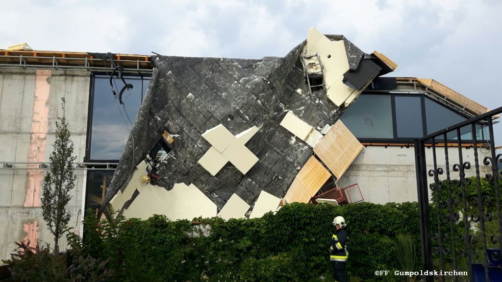 In den Morgenstunden des 11.08.2017 wurde die FF Gumpoldskirchen zu Sturmschäden im Ort Gumpoldskirchen gerufen. Aufgrund der Unwetterfront ab den Abendstunden des 10.08.2017 wurde unter anderem in der Professor Ziegler Strasse das Dach eines Neubaus abgedeckt und Teile des Daches bis zu 150m weit weggeschleudert.