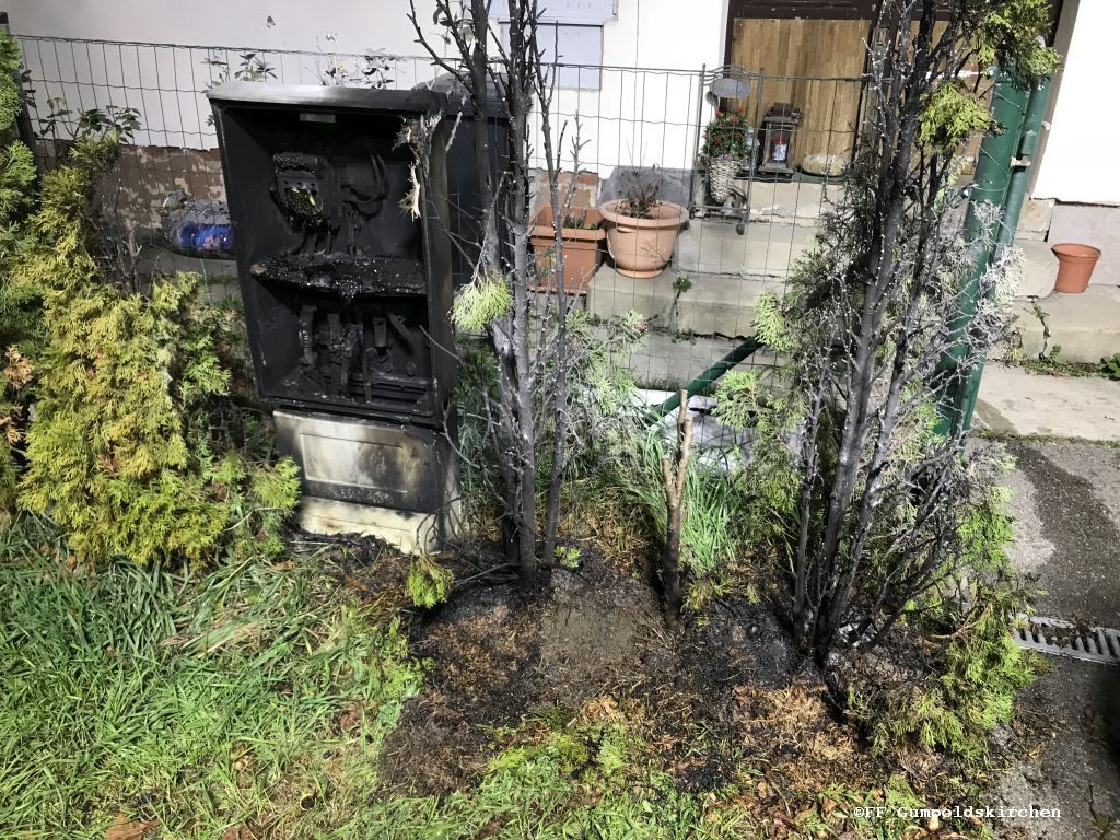 Am 29.11.2018 wurden wir um 16:13 zu einem Brandeinsatz in die Heidestrasse alarmiert. Innerhalb von 10 Tagen kam es erneut zu einem Brand eines Hausanschlusskastens. Bei unserem Eintreffen standen der Hausanschlusskasten und die angrenzende Hecke in Vollbrand.
