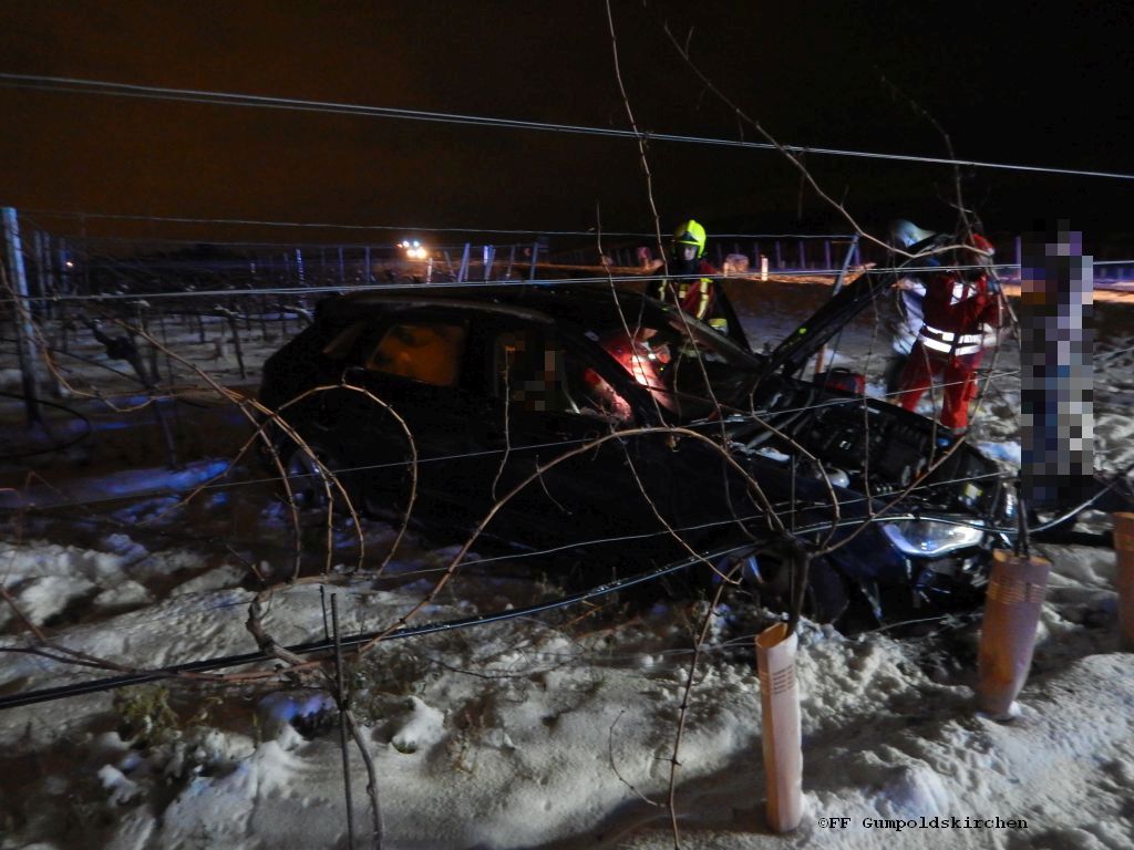 Am 15.12.2018 um 21:23 wurden wir erneut zu einer Fahrzeugbergung auf die Weinbergstrasse alarmiert. Ein aus Pfaffstätten kommender PKW verlor in einer Rechtskurve die Herrschaft über sein Fahrzeug, durchbrach einige Weinreben und kam nach 2 maligen Überschlag in den Weingärten zum Stehen kam.
