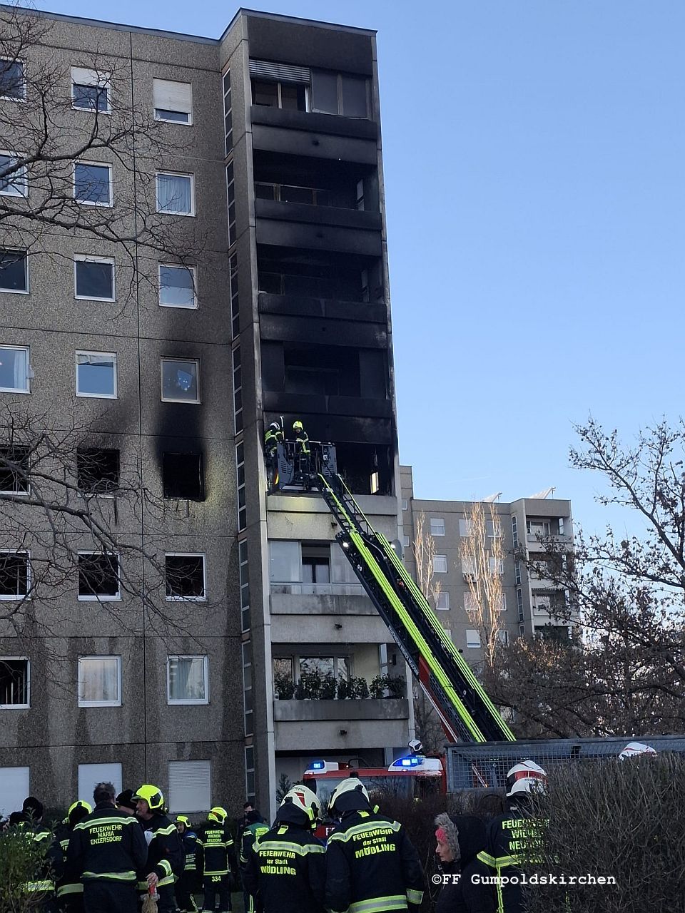 Am Sonntag den 28.12.2025 wurde die Freiwillige Feuerwehr Gumpoldskirchen zur Unterstützung nach Wiener Neudorf alarmiert. In der vierten Etage eines Mehrparteienhauses in Wiener Neudorf stand eine Wohnung in Vollbrand.