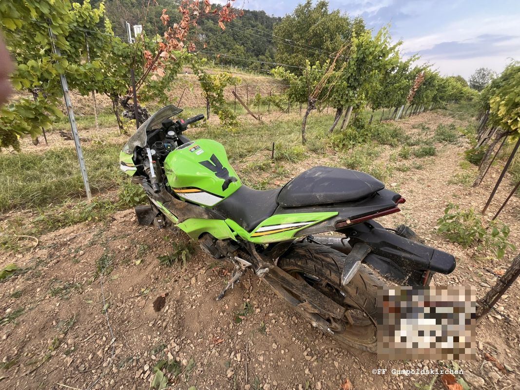 Am 16.08.2025 um 17:30 wurde die Freiwillige Feuerwehr Gumpoldskirchen zu einer Motorradbergung auf die Weinbergstrasse Richtung Mödling alarmiert.  Der Lenker des Motorrads kam in einer Rechtskurve von der Straße ab und landete in den Weinbergen zwischen den Rebstöcken.