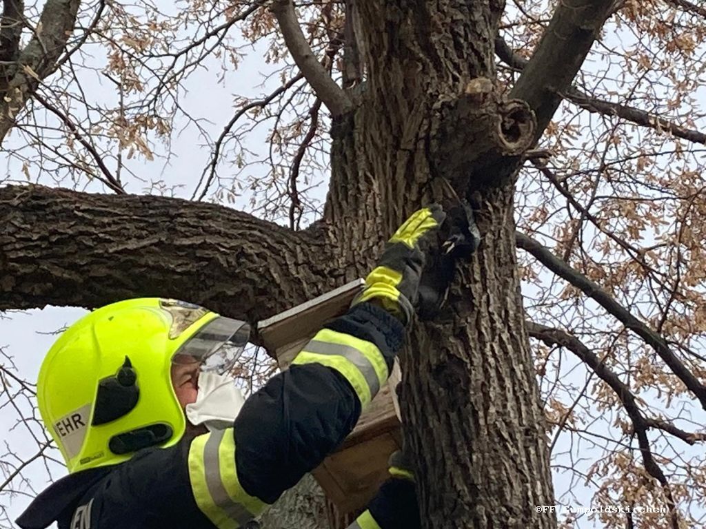 Am 23.02.2021 wurden wir um 11:32 zu einer Tierrettung in die Wiener Straße alarmiert. Ein Vogel hat sich mit seinen Füßen in einen Loch auf einem Baum verfangen und konnte sich nicht mehr selbständig befreien.