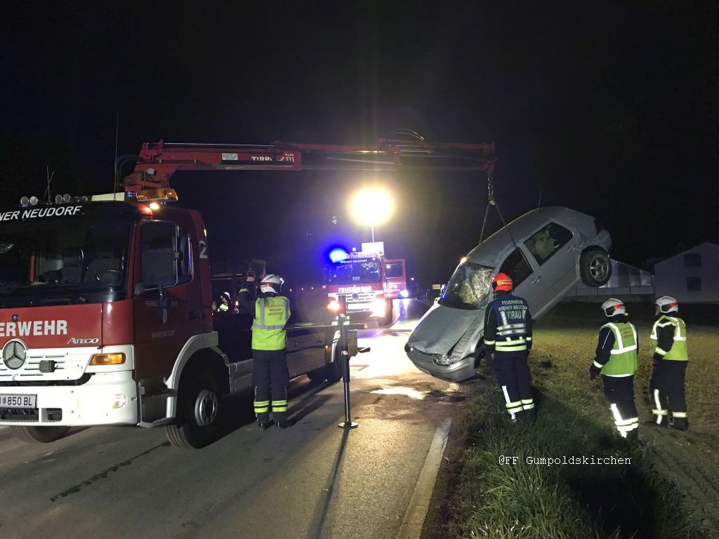 Am 24.10.2019 um 22:04 wurden wir zu einer Fahrzeugbergung auf die Guntramsdorferstrasse (Höhe Blumen Ludwig) alarmiert. Der Fahrzeuglenker verlor aus ungeklärter Ursache in der Rechtskurve die Herrschaft über sein Fahrzeug und kam nach 2 maligen Überschlag im angrenzenden Feld wieder zu stehen.