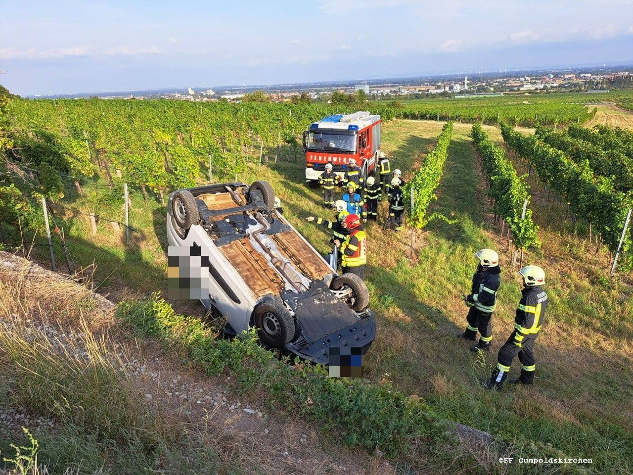 Am 18.09.2023 um 17:10 Uhr wurde die Freiwillige Feuerwehr Gumpoldskirchen zu einer Fahrzeugbergung in einen Weingarten neben dem Satzingweg alarmiert.