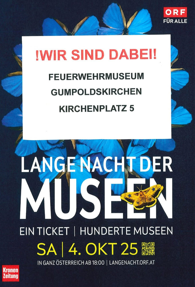 Auch bei der diesjährigen ORF-Lange Nacht der Museen am 04.10.2025 war das Feuerwehrmuseum Gumpoldskirchen am Kirchenplatz vertreten.